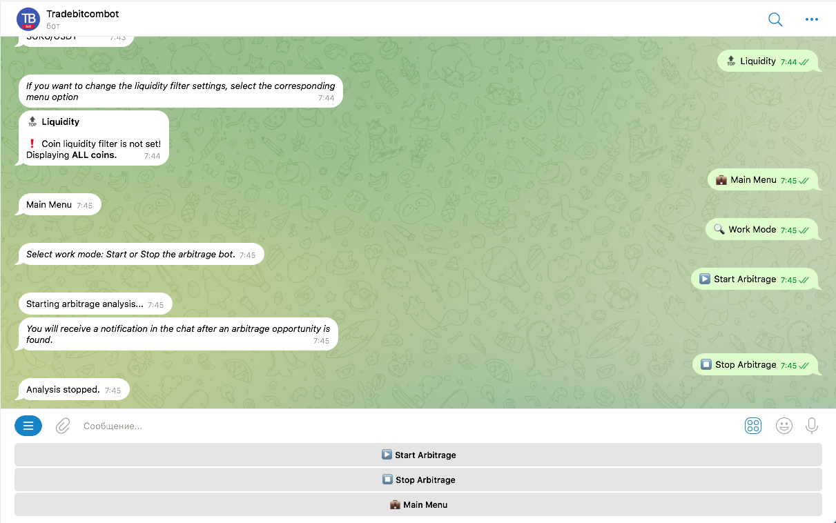 TradeBit Bot — Crypto Arbitrage Scanner for Telegram (Python)